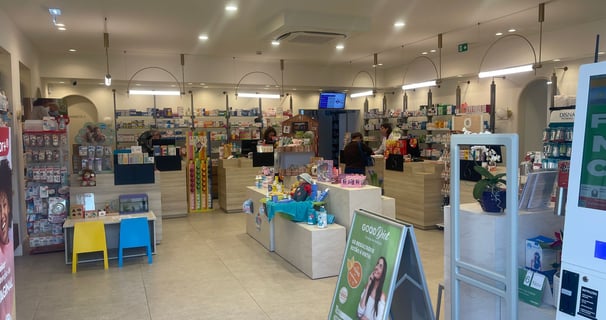 Primeiro piso: Área principal da farmácia, projetada para oferecer conforto e acessibilidade, com um jardim integrado para um ambiente mais agradável.